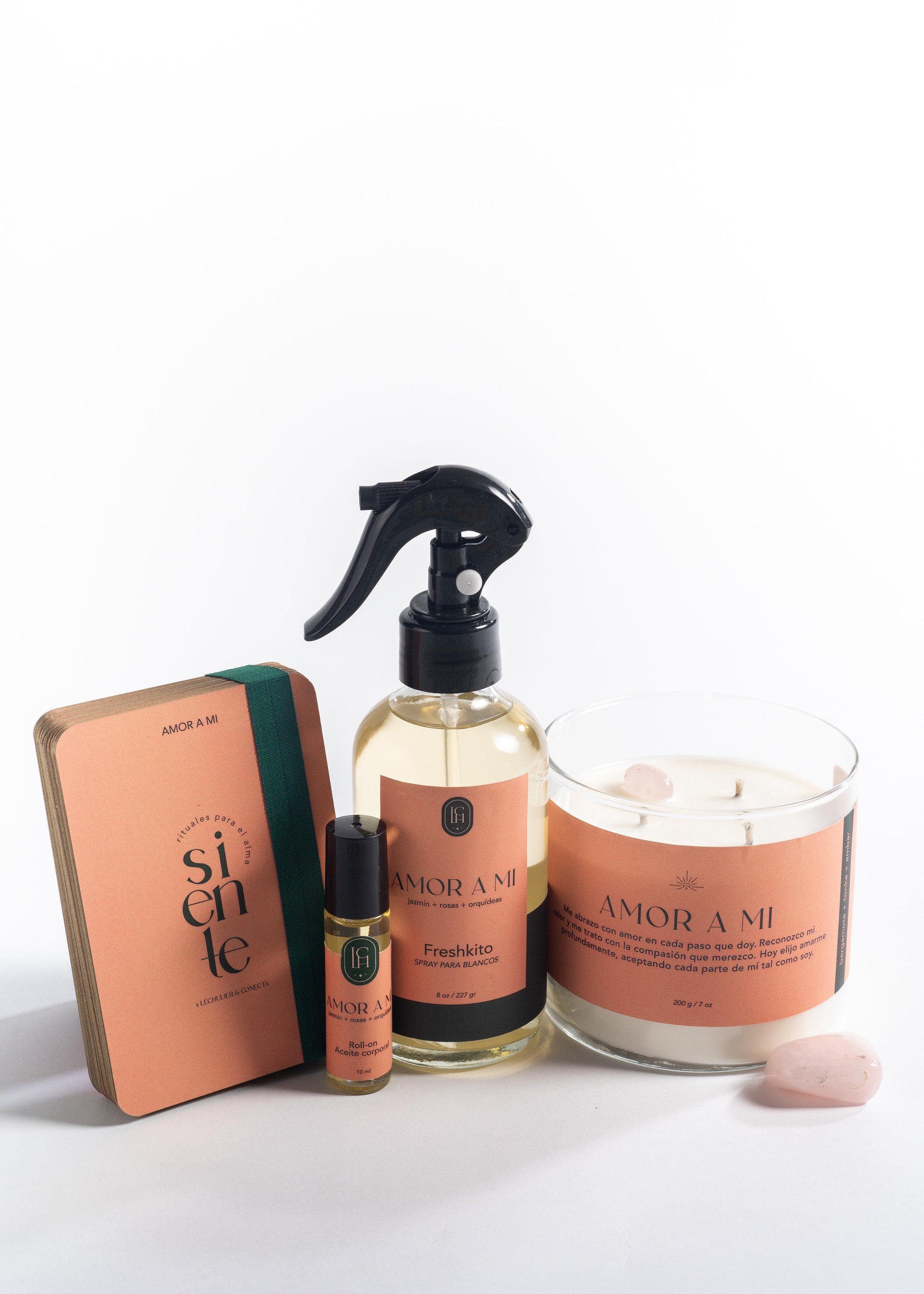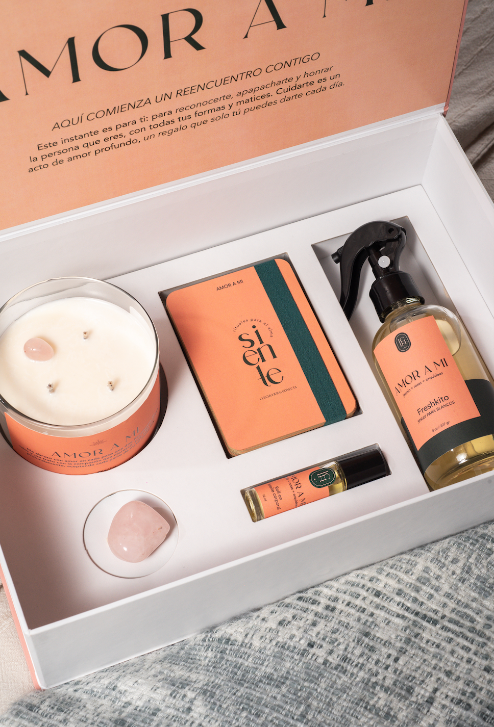 1. Prepara el espacio: Encuentra un lugar tranquilo y cómodo. Toma tres respiraciones profundas para conectar con tu interior. Coloca la vela, el spray y el cuarzo frente a ti.