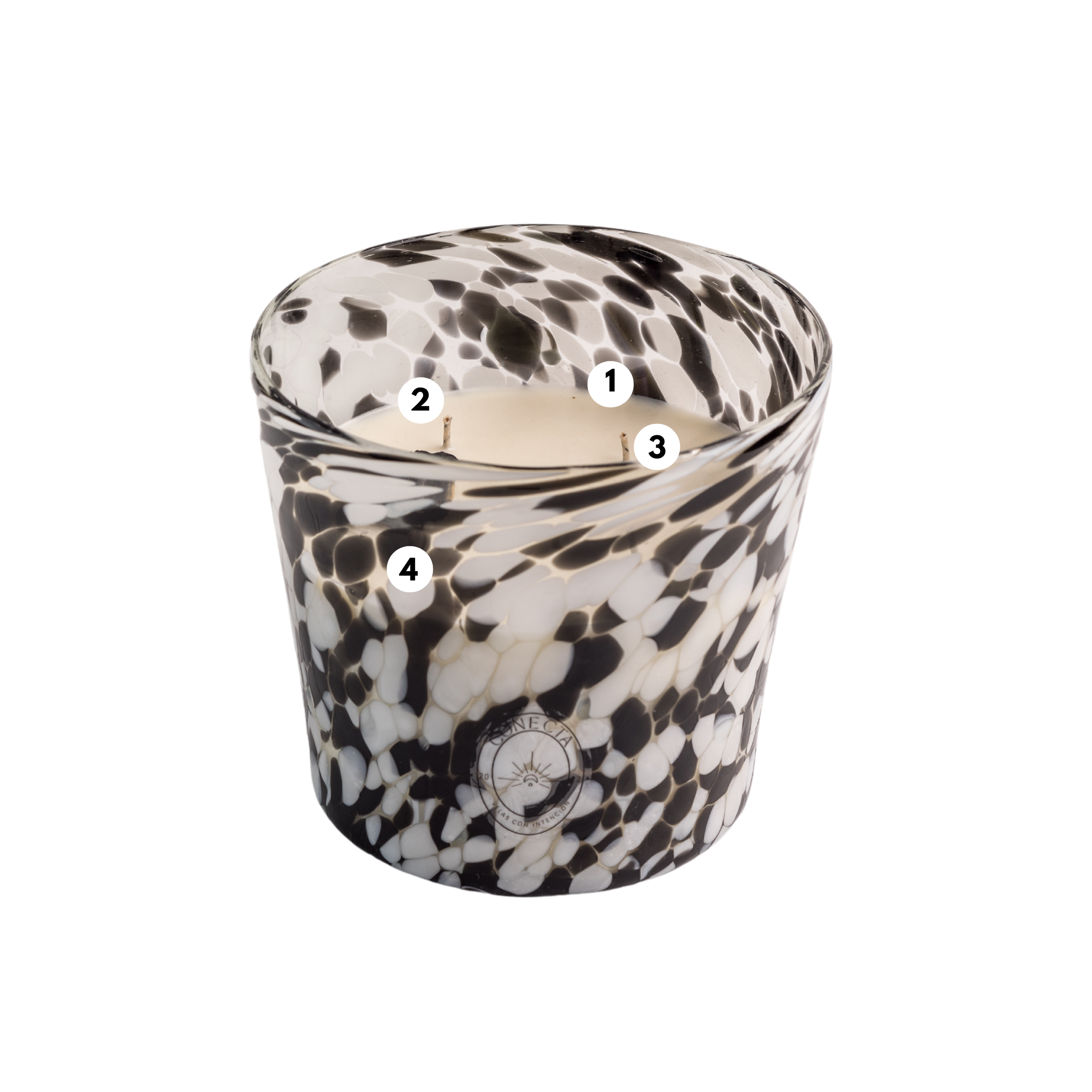 Cada frasco es elegido, o en su caso diseñado, como el elemento visual más importante de la vela. Todos son pensados para que puedan tener un segundo uso después de que la vela se consume por completo.