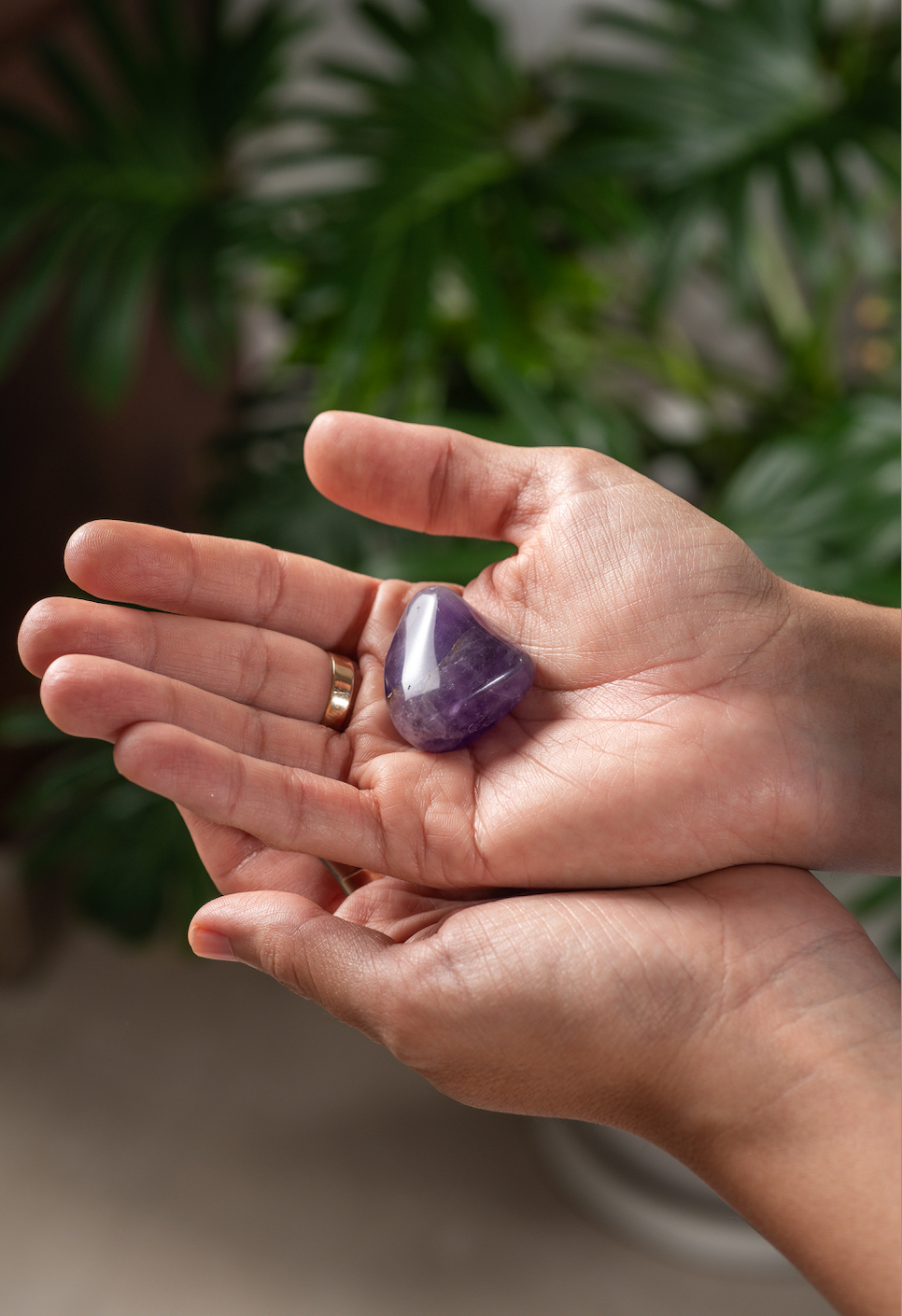 4. Sostén el cuarzo: Sostén el cuarzo en tus manos, sintiendo su energía y conexión con la tierra y la intención que deseas manifestar.